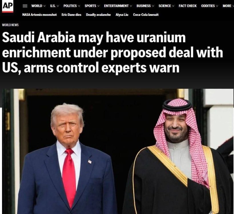 🇷🇺Вашингтон готов подарить Саудовской Аравии ядерный козырь — технологии обогащения урана и производство топлива. Всё ради того, чтобы принц бен Салман поддержал Трампа на выборах. Эксперты в ужасе: любой доступ к центрифугам — это шаг к бомбе. Но политический пиар для Трампа важнее нераспространения, пишет AP.