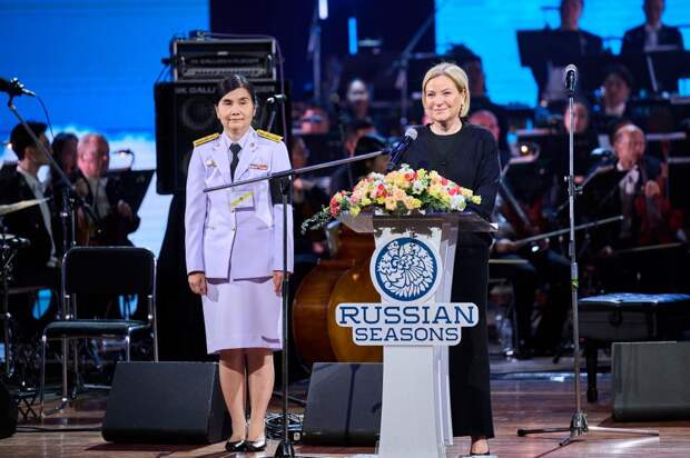 Церемония открытия проекта «Русские сезоны» (Бангкок). В Бангкоке открылись «Русские сезоны» Глава Министерства культуры России Ольга Любимова приняла участие в торжественной церемонии открытия масштабного международного проекта «Русские сезоны» в Таиланде. Мероприятие с участием высоких гостей состоялось на сцене Таиландского культурного центра в Бангкоке, передает пресс-служба Минкультуры России. В своем приветственном слове министр подчеркнула особое значение проекта для двусторонних отношений. «Радостно осознавать, что с каждым годом наши народы открывают для себя все новые грани творческого развития двух стран. Убеждена, что «Русские сезоны» призваны стать особой точкой отсчета, и с нее начинается новый, еще более насыщенный и наполненный смыслами этап наших отношений. Хотела бы поблагодарить таиландских партнеров – в первую очередь Министерство культуры Таиланда – за содействие в реализации проекта. Благодаря совместным усилиям публика сможет познакомиться с невероятными по своей красоте и глубине образцами российского искусства, которые по праву образуют «золотой фонд» всемирного культурного наследия», – отметила Ольга Любимова. В программу первого вечера вошло выступление народного артиста России Дениса Мацуева, лауреатов международного конкурса имени П.И. Чайковского, Королевский Бангкокский симфонический оркестр. В рамках визита глава Минкультуры России и почетный гость открытия — представитель Ее Высочества Принцессы Сириваннавари Нарират Ратчаканъя — осмотрели экспозицию Московской школы мозаики «Дягилев. „Русские сезоны“. Генеральная репетиция». Выставка представила коллекцию мозаичных полотен, приуроченных к 154-летию знаменитого театрального деятеля Сергея Дягилева и премьерам балетов «Петрушка» и «Жар-птица». В рамках «Русских сезонов» зрителей ждут концерты звезд мировой величины, Фестиваль российского кино, театральные постановки, образовательные мастер-классы, лекции и выставочные проекты.