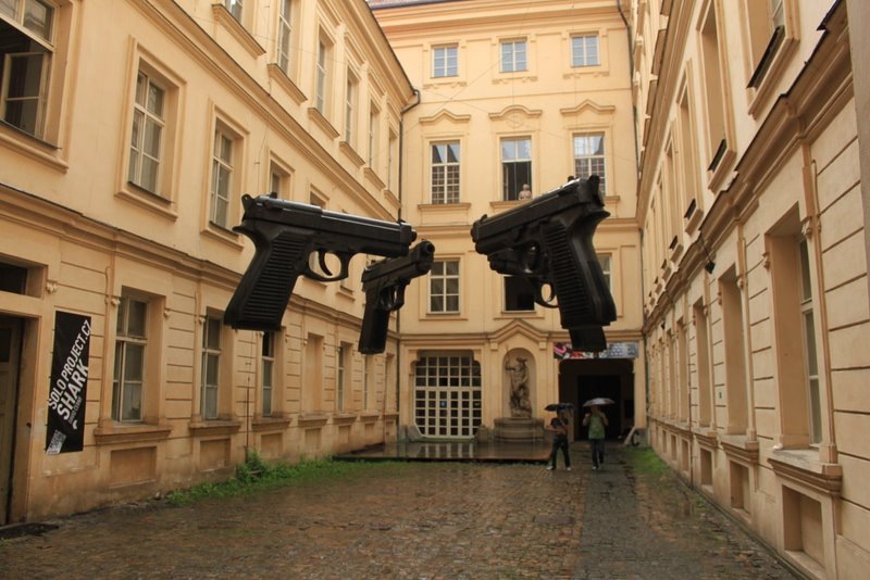 Photo Information for инсталляция в подворотне Праги со стреляющими пистолетами