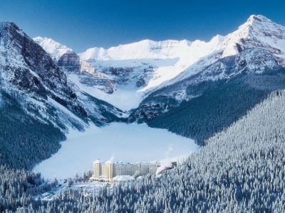 lakelouise fairmontcll exterior3 winter aerial