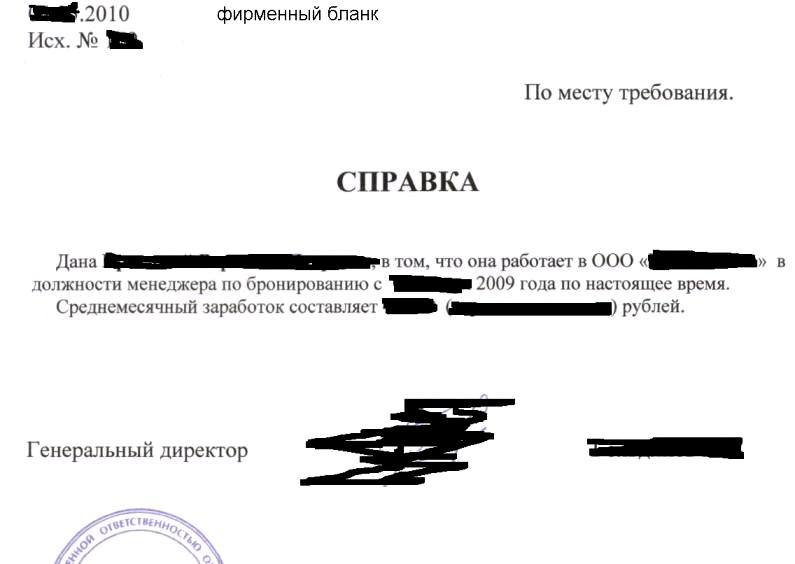 Справка с места работы
