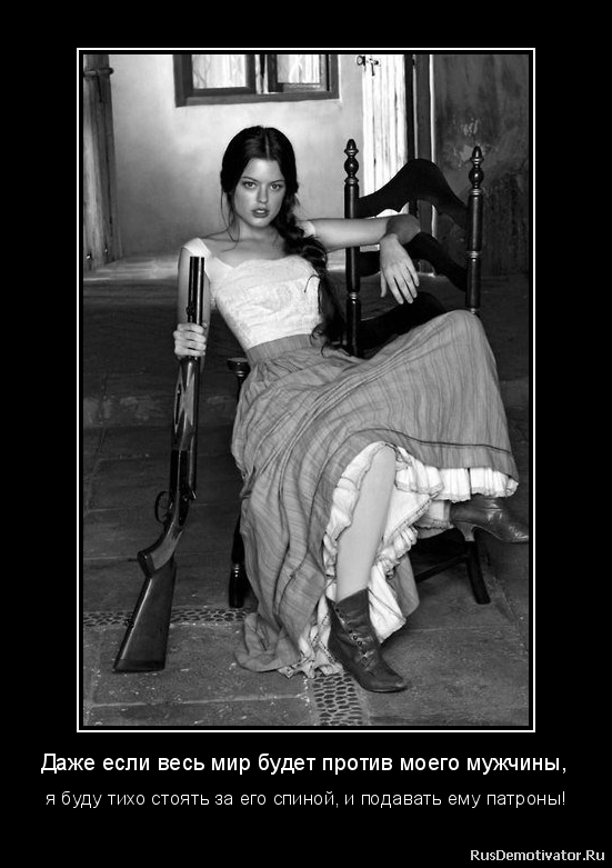 Даже если весь мир будет против моего мужчины, я буду тихо стоять за его спиной, и подавать ему патроны!