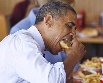 Обама поедает гамбургер