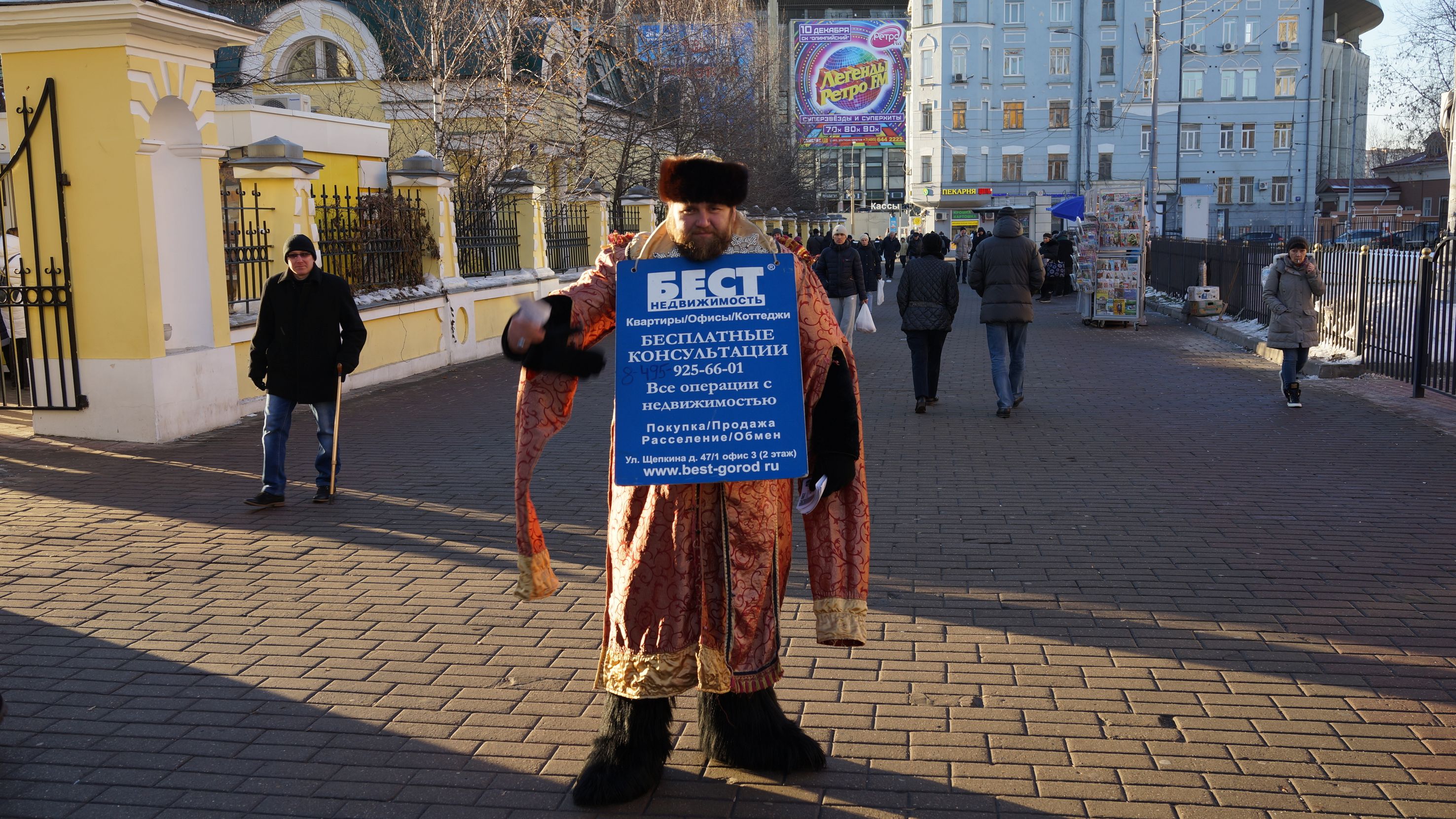 Photo Information for Стилизованный раздатчик рекламных флайеров у православного храма, церкови Филиппа, митрополита Московского, что в Мещанской слободе, улица Гиляровского, 35, Москва, 23.11.2016 г.