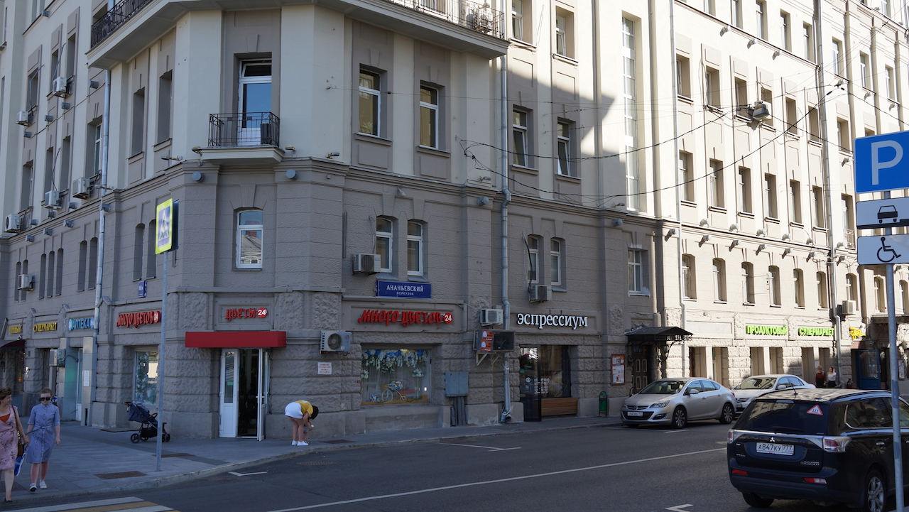 Садовое кольцо, жилой дом на перекрёстке Ананьевского переулка и Большой Сухаревской площади 16:18с1 с магазином Много Цветов и Эротическим массажем, , Москва 11.08.2018 г.JPG
