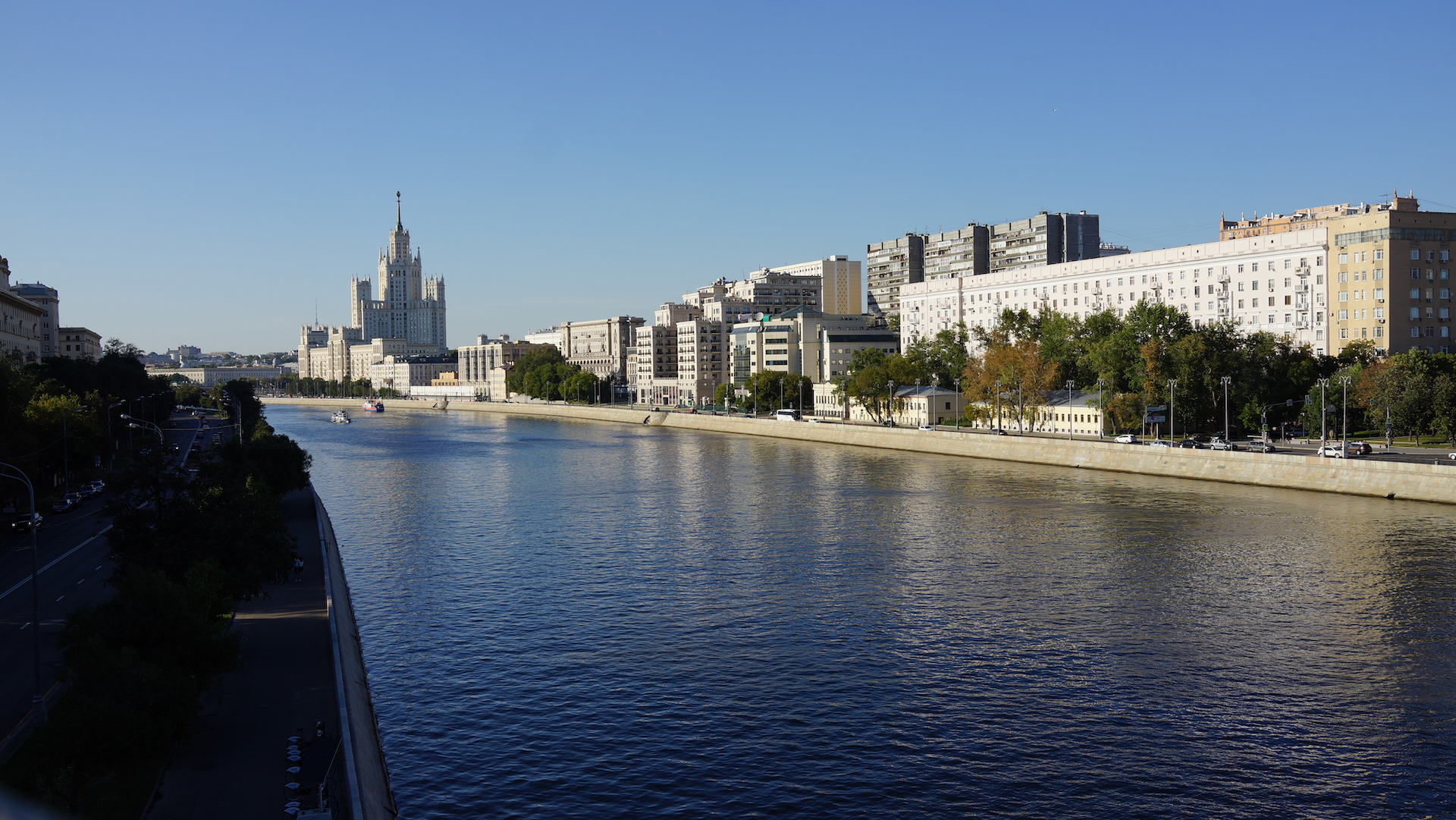 Садовое кольцо, вид на Москва реку, на Гончарную и Космодамианскую набережные и на Высотку на Котельнической набережной с Большого Краснохолмского моста, Москва 11.08.2018 г..JPG