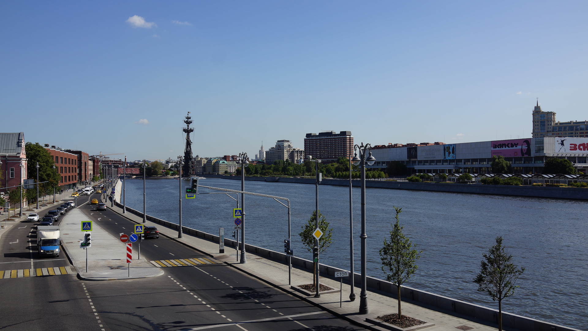 Садовое кольцо, вид на Пречистенскую набережную и Памятник 300-летию Российского флота с Крымского моста, Москва 24.08.2018 г..JPG