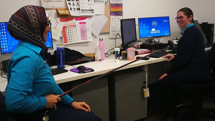 Colleagues at Liverpool Hospital's cancer clinic in NSW get to grips with social distancingColleagues at Liverpool Hospital's cancer clinic in NSW get to grips with social distancing.jpeg
