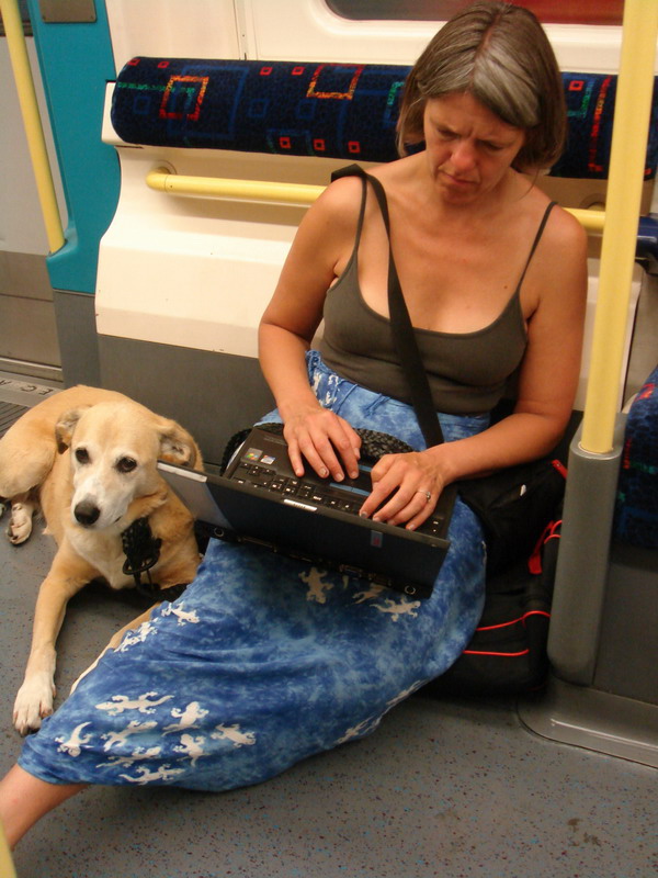 Естьсвободные сиденья в вагоне, но она любит сидеть с собакой..