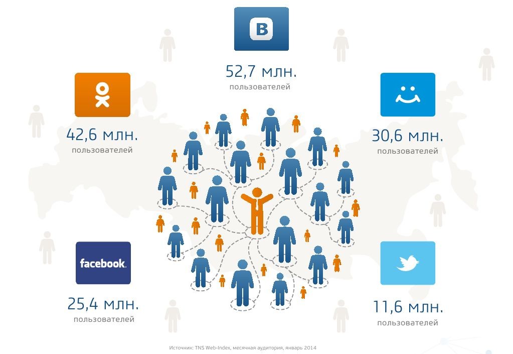 Количество участников соц. сетей в России